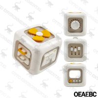 Each of the cube's durable sides offers a different type of interactive activity to challenge problem-solving skills and fine motor coordination: Switch Press, Mirror Buttons, Dial, Drawer Pull, Interface Sliders, and Spinner.